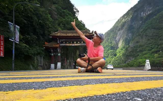 热心的小俊亦是个狂热的摄影爱好者,为了找到理想的角度,小伙子扭动着胖胖的身躯,手机贴地蜷缩在公路上为游客奉上一张非常nice的纪念照。